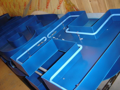 Для внутренней подсветки букв с данным видом корпуса подойдут люминесцентные лампы, неон, светодиодные модули.